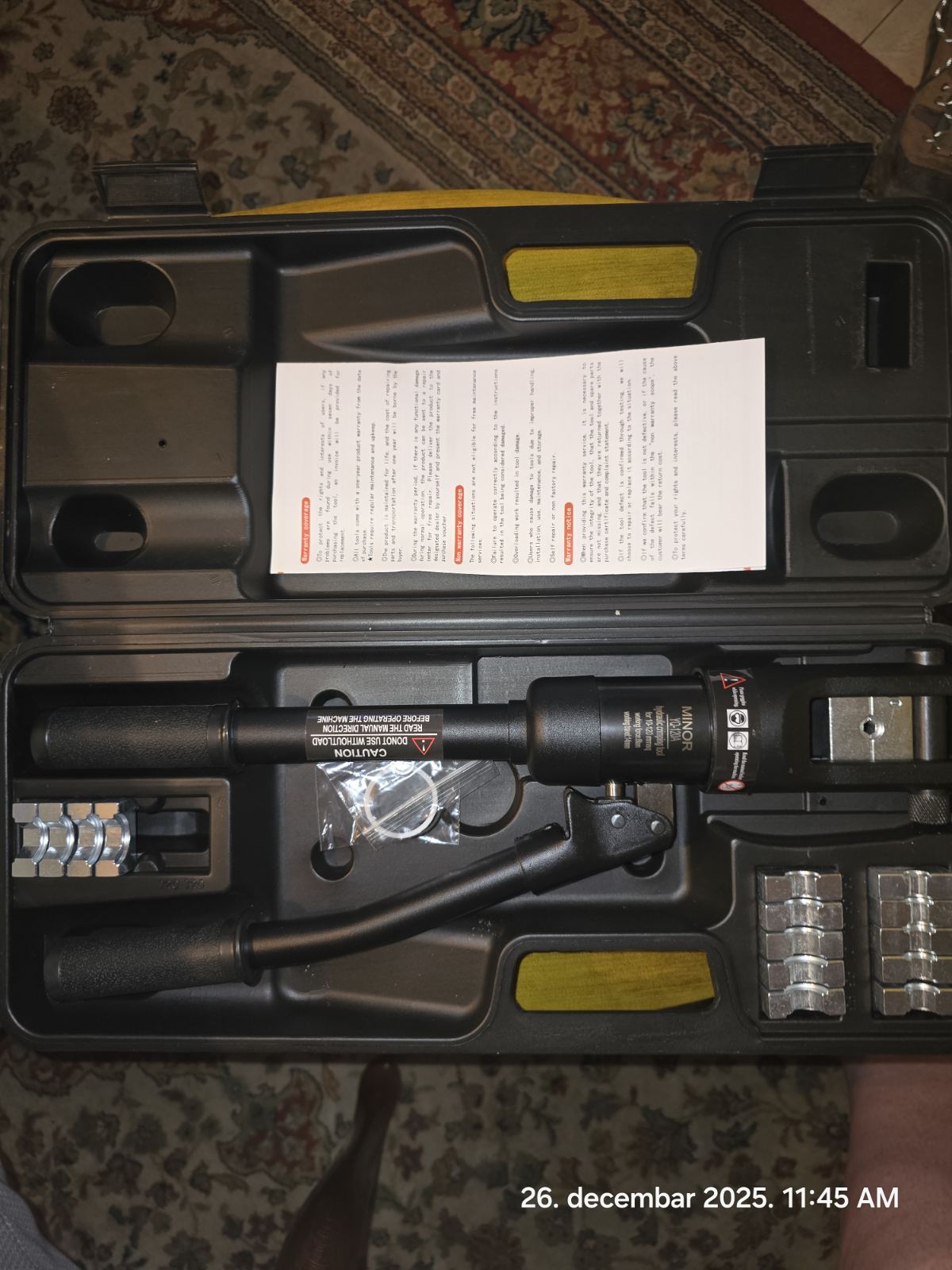 ✔️ Dolazi u koferu i sa nastavcima za provodnike preseka 10, 16, 25, 35, 50, 70, 95, 120mm2.